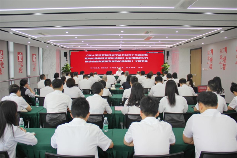 景平以“深入學(xué)習(xí)貫徹習(xí)近平總書(shū)記關(guān)于全面加強(qiáng)黨的紀(jì)律建設(shè)重要論述精神 全面增強(qiáng)新時(shí)代推動(dòng)企業(yè)高質(zhì)量發(fā)展的紀(jì)律保障”為主題,帶領(lǐng)大家深入學(xué)習(xí)習(xí)近平總書(shū)記關(guān)于黨的紀(jì)律建設(shè)的重要論述精神,深刻解讀新修訂《中國(guó)共產(chǎn)黨紀(jì)律處分條例》的主要內(nèi)容、鮮明特征和重要意義,并站在以黨的紀(jì)律建設(shè)保障企業(yè)高質(zhì)量發(fā)展的高度,要求各部門(mén)、各企業(yè)提高政治站位,持續(xù)扎實(shí)開(kāi)展黨紀(jì)學(xué)習(xí)教育;增強(qiáng)規(guī)矩意識(shí),強(qiáng)化黨紀(jì)黨規(guī)的落實(shí)執(zhí)行;堅(jiān)持結(jié)合實(shí)踐,突出黨紀(jì)黨規(guī)的支撐保障作用。通過(guò)學(xué)習(xí)教育,真正做到學(xué)紀(jì)、知紀(jì)、明紀(jì)、守紀(jì),用黨規(guī)黨紀(jì)校正思想和行動(dòng),讓廣大黨員干部在黨紀(jì)黨規(guī)的保護(hù)下放開(kāi)手腳、心無(wú)旁騖地干工作、拼事業(yè),努力把四川發(fā)展(控股)公司打造成為一流國(guó)有資本投資運(yùn)營(yíng)公司的宏偉藍(lán)圖加快變成成績(jī)單、實(shí)景圖。