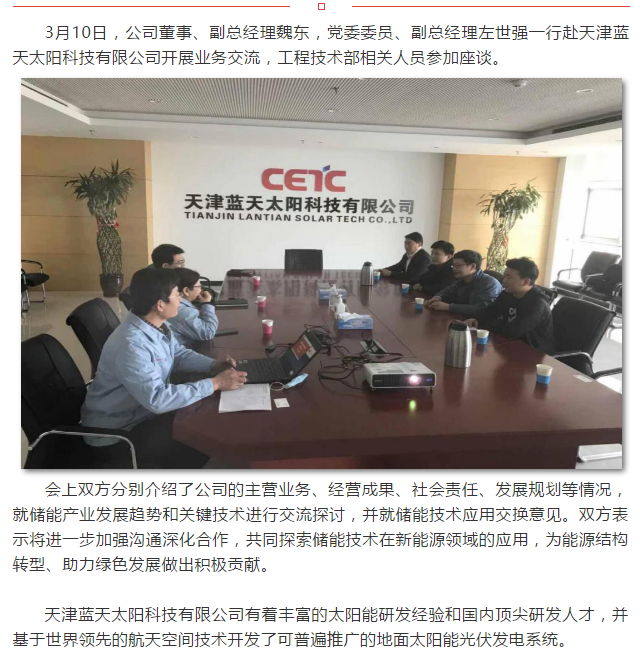 晟天新能源與天津藍(lán)天太陽科技有限公司開展業(yè)務(wù)交流