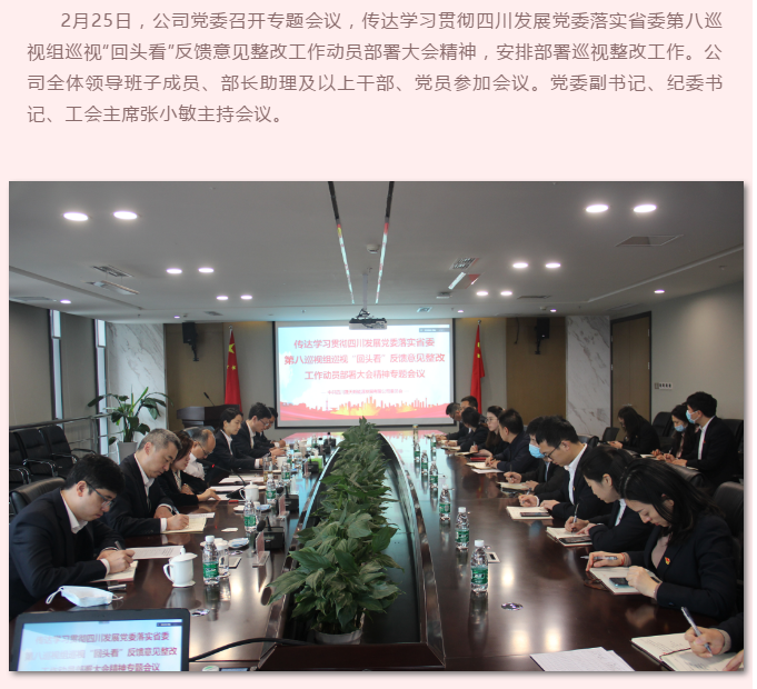 公司黨委傳達(dá)學(xué)習(xí)貫徹四川發(fā)展黨委落實(shí)省委第八巡視組巡視“回頭看”反饋意見 整改工作動員部署大會精神