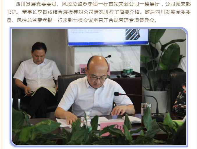 四川發(fā)展黨委委員、風(fēng)控總監(jiān)羅孝銀一行蒞臨公司督導(dǎo)合規(guī)管理試點(diǎn)工作