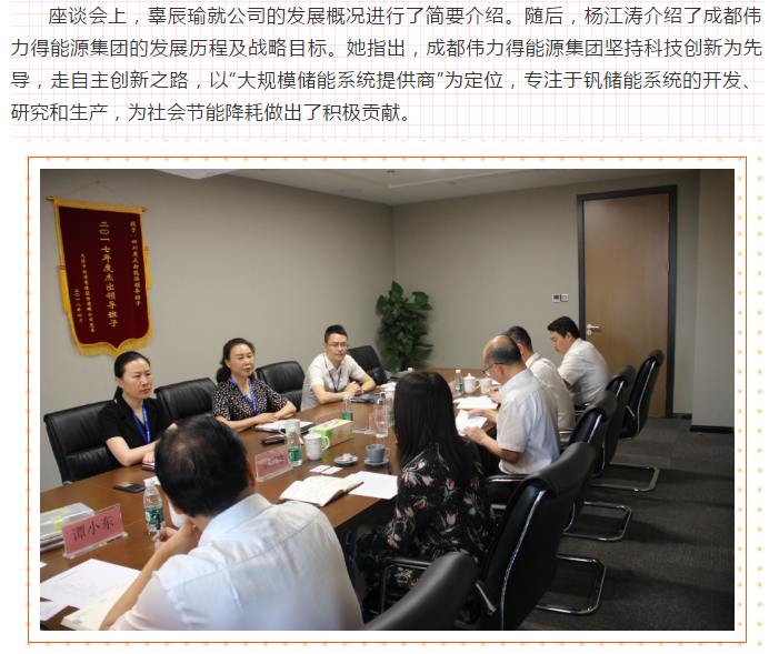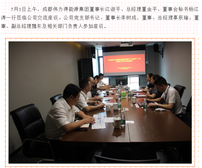 成都偉力得能源集團(tuán)董事長(zhǎng)江淑平一行蒞臨公司交流座談