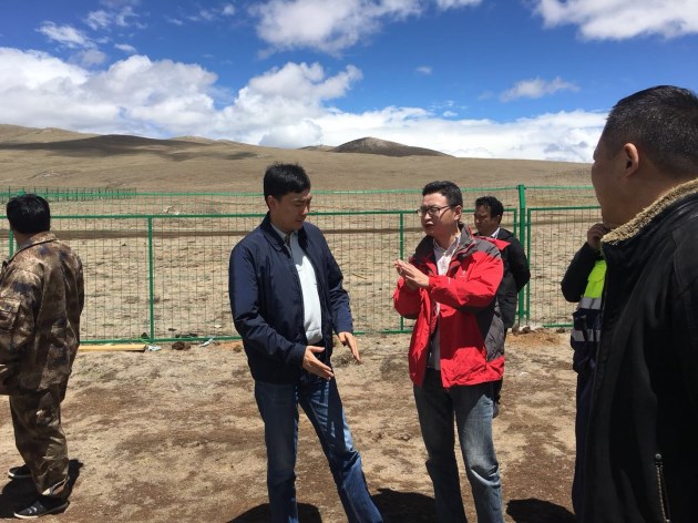 公司自成立以來始終將“綠色生態(tài)、高效節(jié)約、環(huán)境友好”的理念積極融入到項(xiàng)目開發(fā)工作中,打造了一批生態(tài)環(huán)保、技術(shù)領(lǐng)先的光伏發(fā)電項(xiàng)目。鄉(xiāng)城正斗鄉(xiāng)20MW光伏電站扶貧項(xiàng)目采用先進(jìn)的T0水平單軸跟蹤技術(shù),有利于草場保護(hù)和退化草場的恢復(fù),使光伏發(fā)電與新農(nóng)村建設(shè)、生態(tài)環(huán)境建設(shè)、農(nóng)牧業(yè)發(fā)展、提高農(nóng)牧民經(jīng)濟(jì)收益相結(jié)合。鄧超一行參觀了鄉(xiāng)城縣正斗鄉(xiāng)20MW光伏扶貧項(xiàng)目施工現(xiàn)場后,對公司的施工工藝和技術(shù)水平表示了肯定和贊揚(yáng),并期望公司能夠持續(xù)創(chuàng)新,打造新能源行業(yè)標(biāo)桿。