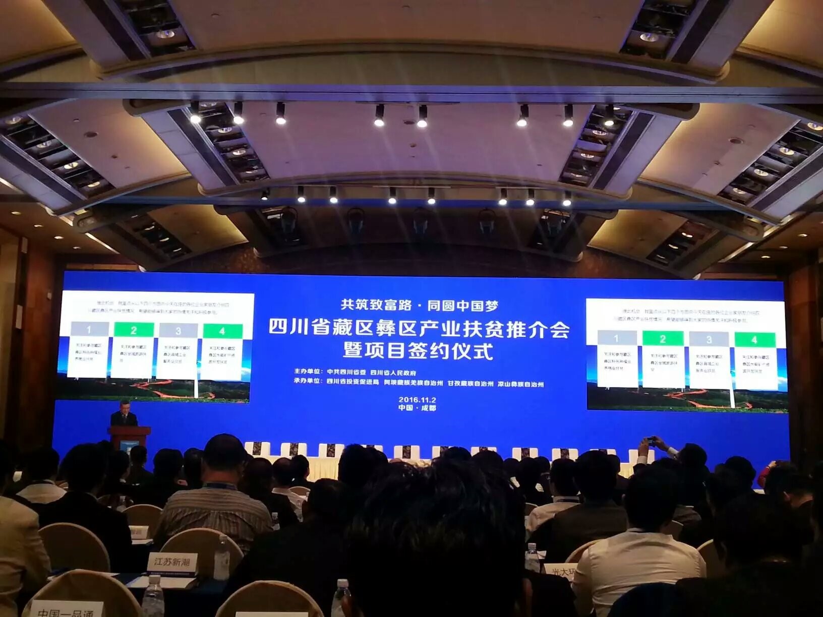 2017年11月2日下午,四川省藏區(qū)彝區(qū)產(chǎn)業(yè)扶貧推介會暨項目簽約儀式在成都錦江賓館成功舉行。四川省委副書記劉國中、副省長朱鶴新、省人大常委會副主任劉作明,等相關(guān)市州主要負(fù)責(zé)人,簽約企業(yè)負(fù)責(zé)人參會。我公司常務(wù)副總經(jīng)理、黨支部書記江云參加此次推介會并代表公司簽約。