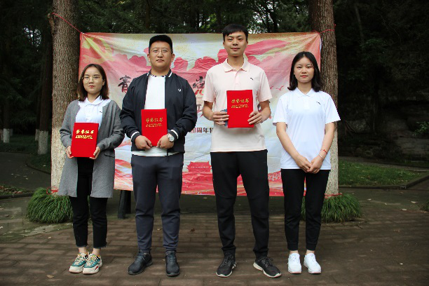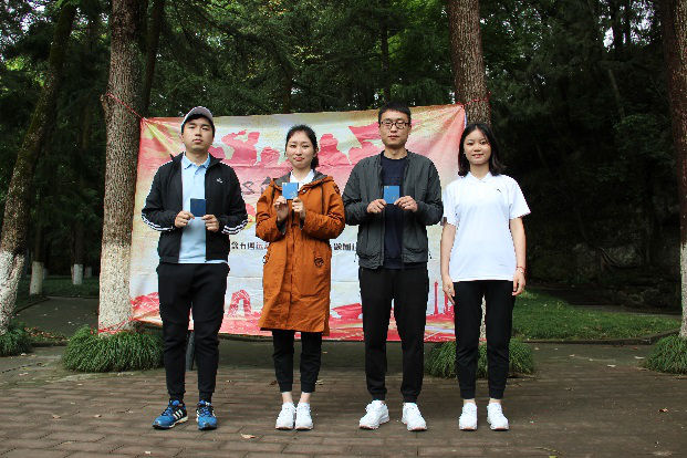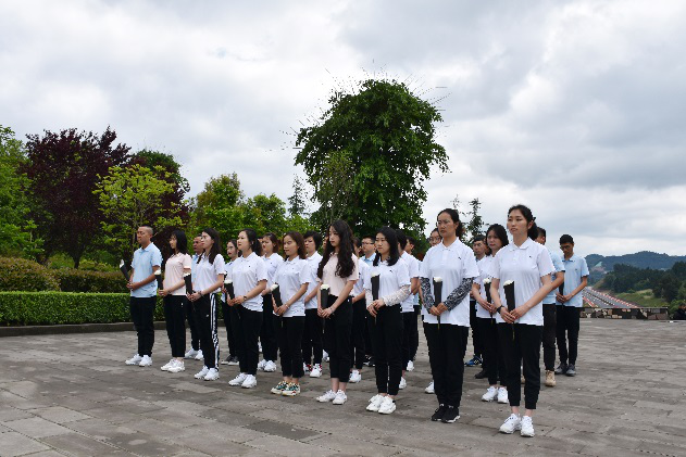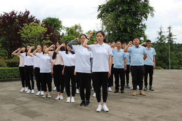 依山而建的書劍廣場里,陳毅元帥的塑像雄踞廣場中央。全體團員青年肅立于陳毅廣場,奏唱中國人民共和國國歌。歌畢,青年團員手持獻花,環(huán)繞陳毅元帥塑像一周,依次敬獻鮮花,并面向陳毅元帥塑像莊重地三鞠躬,表達對陳毅元帥的深深敬仰和懷念之情。隨后,大家右手握拳,面向團旗重溫入團誓詞:“我志愿加入中國共產(chǎn)主義青年團,堅決擁護中國共產(chǎn)黨的領(lǐng)導(dǎo),遵守團的章程……”。誓詞響起,再次喚醒了團員青年的使命感和責任感,堅定了共產(chǎn)主義理想信念。